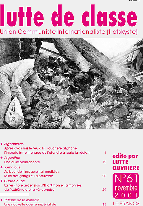 Dans son n° 61 de novembre 2001, Lutte de Classe a publié une Tribune de la minorité intitulée "Une nouvelle guerre impérialiste" et évoquant les liens d'Oussama Ben Laden et de Khaled Ben Mahfouz avec certaines institutions financières. Sur la foi de rapports publiés précédemment dans la presse, cet article …
