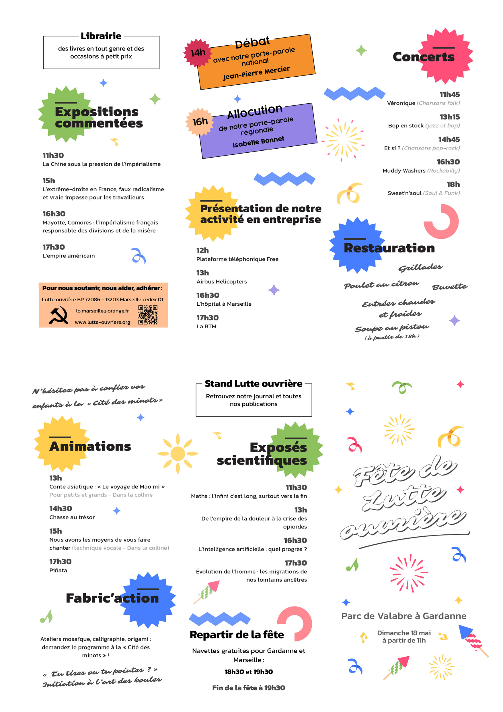 Navettes gratuites à partir de Marseille devant la fac St Charles Bd Gustave Desplaces à 10h30 et 12h00. Passages à 10h50 et 12h20 à l'arrêt de bus du rond-point de la gare SNCF de Gardanne